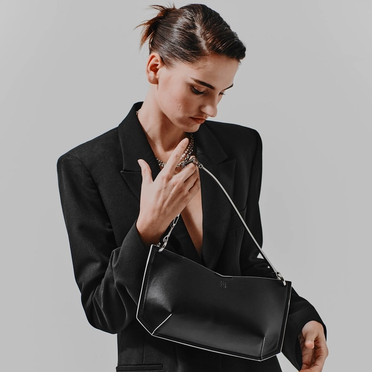 - A hard shaped shoulder bag with pointy and maximized the volume design